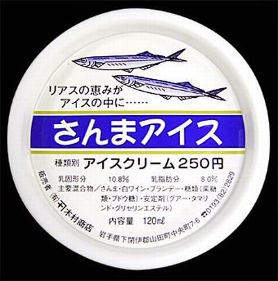 Este helado tiene el sabor de un pescado japonés llamado Saury. No se preocupen por el olor, el cual está disimulado por varias dosis de brandy.