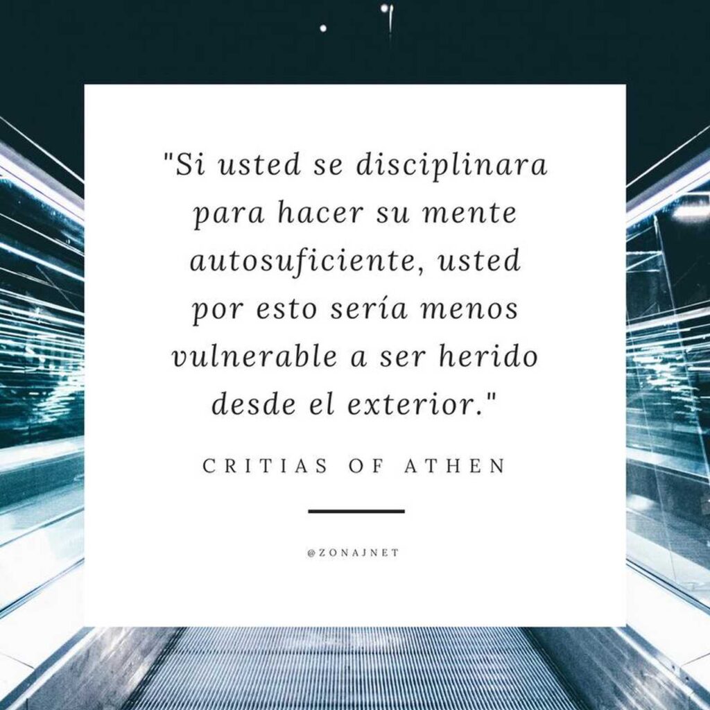 “Si usted se disciplinara para hacer su mente autosuficiente, usted por esto sería menos vulnerable a ser herido desde el exterior.” – Critias of Athen