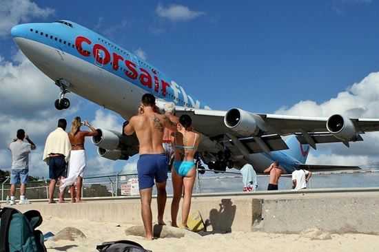 El Aeropuerto Juliana en las Antillas tiene una de las pistas de aterrizaje más cortas del mundo y para poder aterrizar deben descender hasta una altura de 10 a 20 metros sobre las cabezas de los turistas quienes se relajan en la playa Maho.