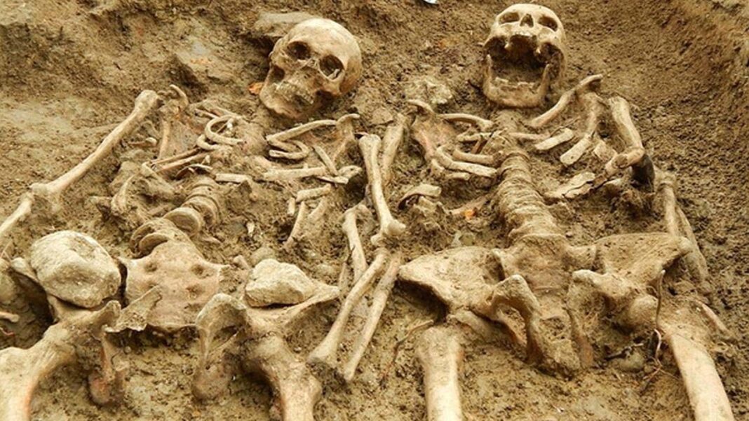Un par de esqueletos entrelazados en un abrazo eterno han sido hallados en un sitio de excavaciones arqueológicas del neolítico cerca de Mantova, Italia.