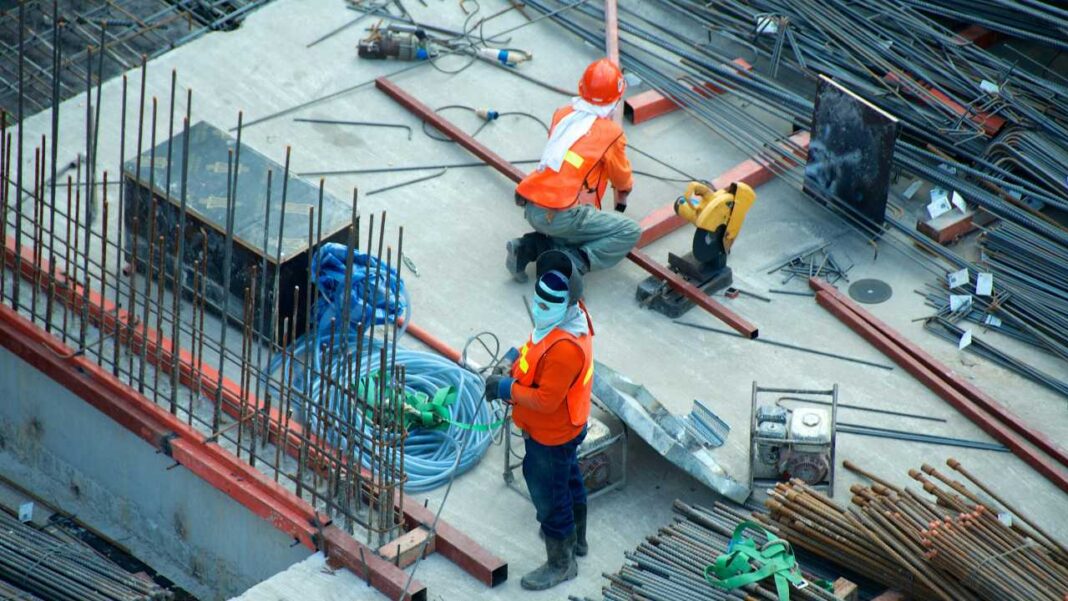 El trabajo avanza mientras cada ladrillo al llegar a un nivel es descargado y luego pasado al nivel siguiente.