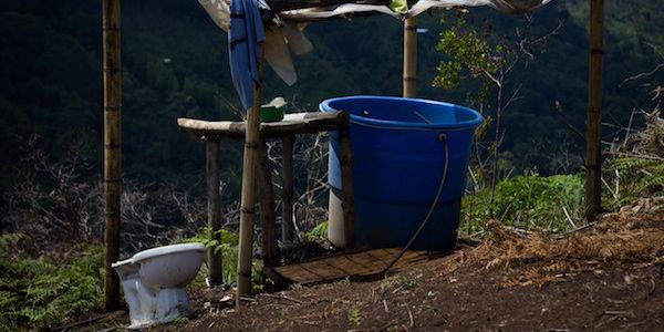 Mientras tanto 14 familias compartían todo. Había solo un baño al aire libre y sin agua potable (ni siquiera un tubo por donde salieran los desechos, tocaba ponerlos en un balde y sacarlos de ahí), una cancha de fútbol y un pequeño sembrado de yuca que apenas estaba empezando a germinar. Eso era todo. Ni un televisor, ni un bombillo, ni una radio.