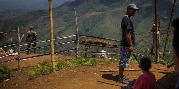 Logramos que se corrieran 500 metros, aunque ahora están volviendo”, me dijo Albeiro mientras yo buscaba hablar con el soldado al mando que estaba atrincherado 500 metros al sur de la casa de su casa.